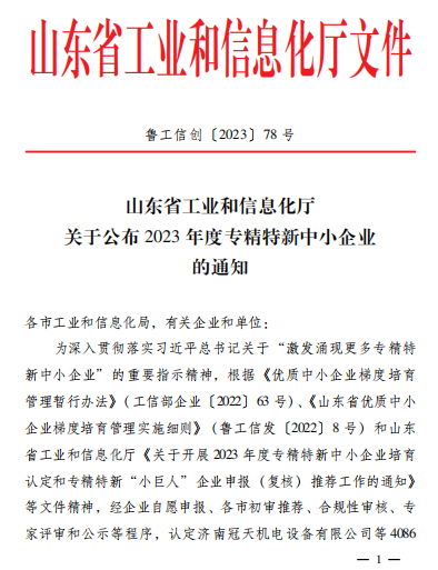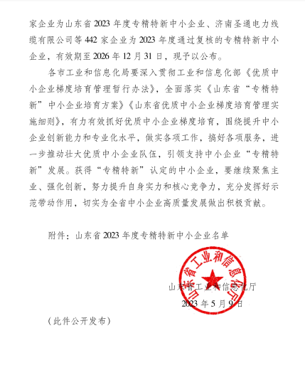 2023年5月9日,山東省工業(yè)和信息化廳公布了《關(guān)于2023山東省“專精特新”中小企業(yè)名單的通知》,經(jīng)企業(yè)申報(bào)、市區(qū)審核推薦、專家評審等程序,淄博奧固特科技有限公司憑借優(yōu)越的綜合管理策略和高效創(chuàng)新能力,成功獲評山東省“專精特新”中小企業(yè)稱號。